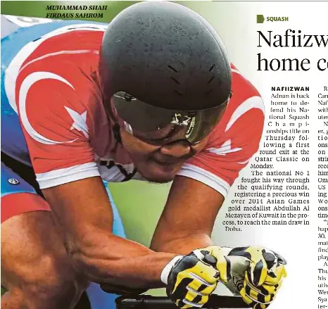 In a sime darby foundation (sdf) statement today, muhammad shah, who won the men's keirin gold at the australian national track cycling championships last march, said to represent.